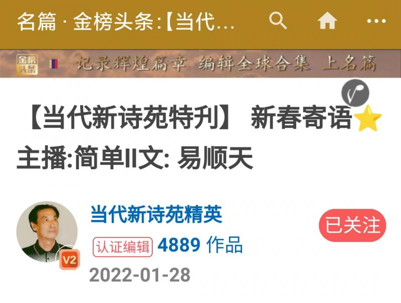 【当代新诗苑2】⭐易顺天 …⭐ 过年组诗