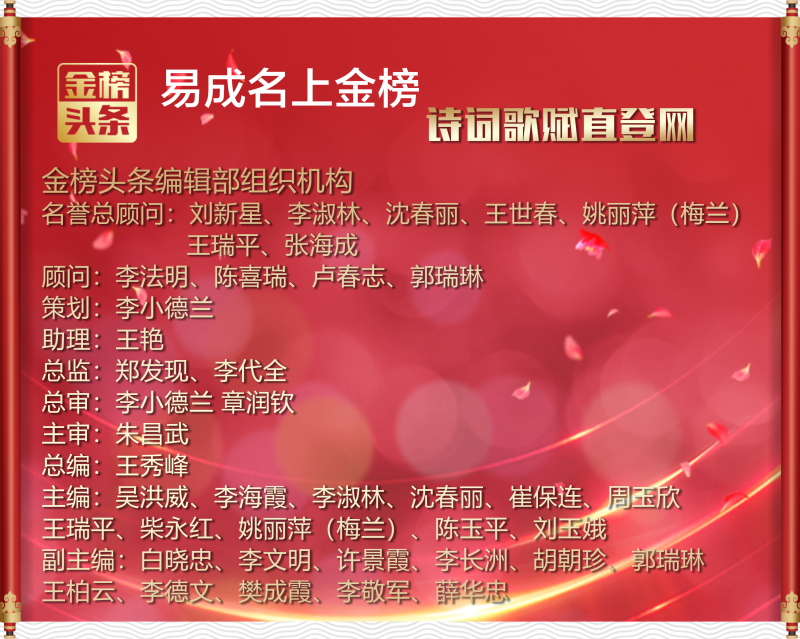 作为金榜头条形象大使,为金榜头条而代言,肩负起传播文化、弘扬正能量的使命。以总编之责,精心策划,严格把关,使金榜头条成为文学爱好者的精神家园,汇聚各方佳作,展现文学的魅力与力量。身为职业作家,笔耕不辍,佳作频出。其作品题材广泛,涵盖诗歌、散文、小说等多种体裁,或歌颂美好生活,或抒发人生感慨,或反映社会现实,皆以深刻的思想内涵和独特的艺术风格,赢得读者的喜爱和赞誉。