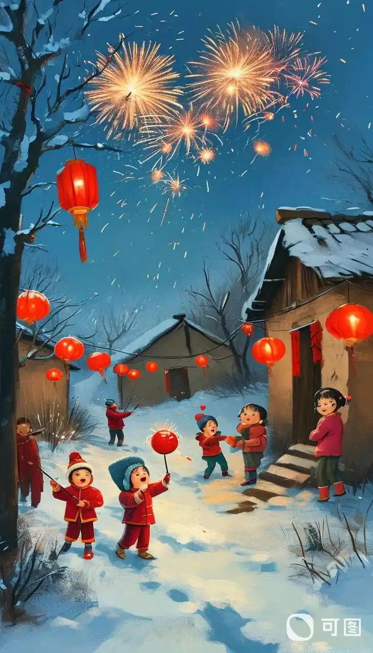 除夕,是年的高潮。一大早,大人们就开始忙碌起来,贴春联、挂灯笼、放鞭炮。红红的春联,像两条火红的绸带,贴在大门两侧,为节日增添了浓浓的喜庆氛围;大红灯笼高高挂起,在微风中轻轻摇曳,仿佛在向人们诉说着新年的祝福;鞭炮声此起彼伏,响彻整个村子,那清脆的声响,如同新年的钟声,敲开了幸福的大门。